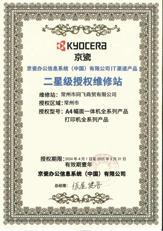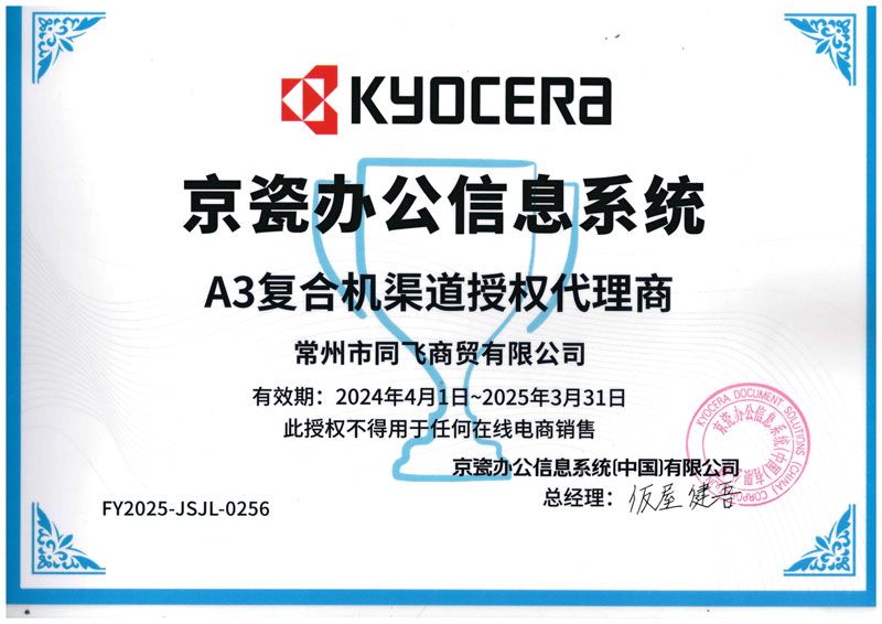 公司取得了日本京瓷復印機、打印機,映美針式打印機、天威耗材、安興紙業等眾多知名品牌常州地區代理權。